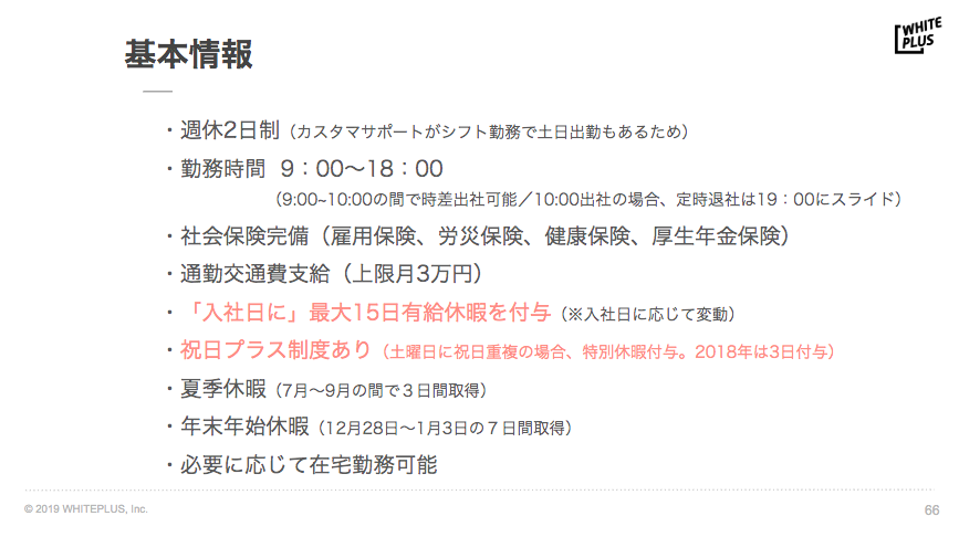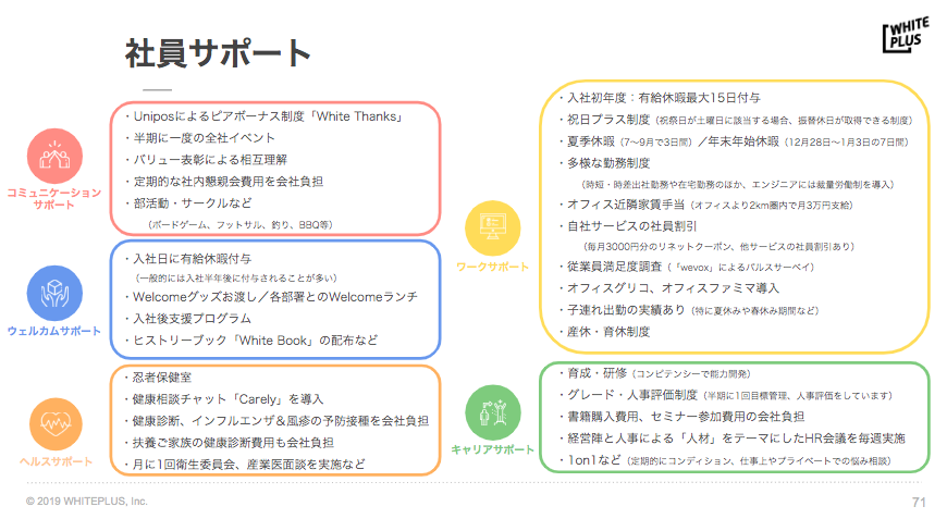 まとめると、ホワイトプラスでは社員一人ひとりが自分らしく活躍しつつ、幸福かつ豊かな生活を送るために、会社として何ができるかという観点で組織運営をしています。(もちろんこれ以外にもありますが、今回は「支援」にフォーカスしているので、割愛します)
