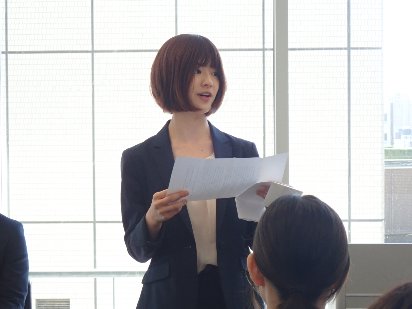 その後、今年からの新しい試みとして、1年先輩である2018年度新卒社員2名より、自らの体験を元にした社会人としての心構えなどのアドバイスがありました。