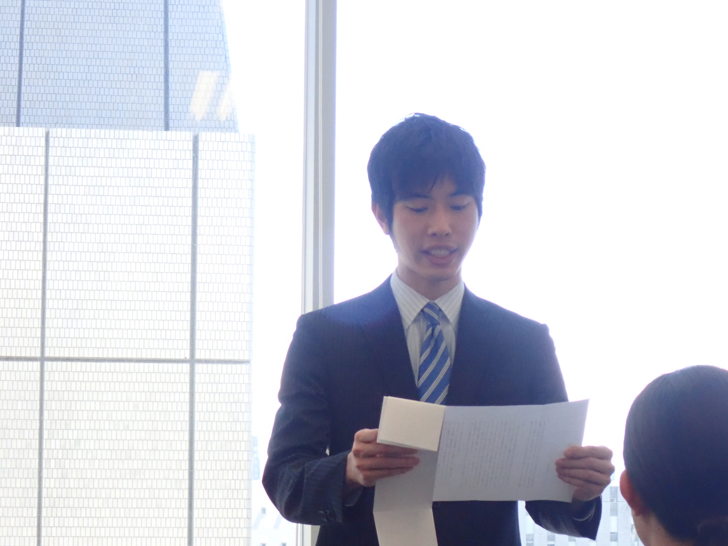 吉岡からは、社会人としての心得えについての話がありました。最後に記念撮影をして、無事、内定式は終了いたしました。