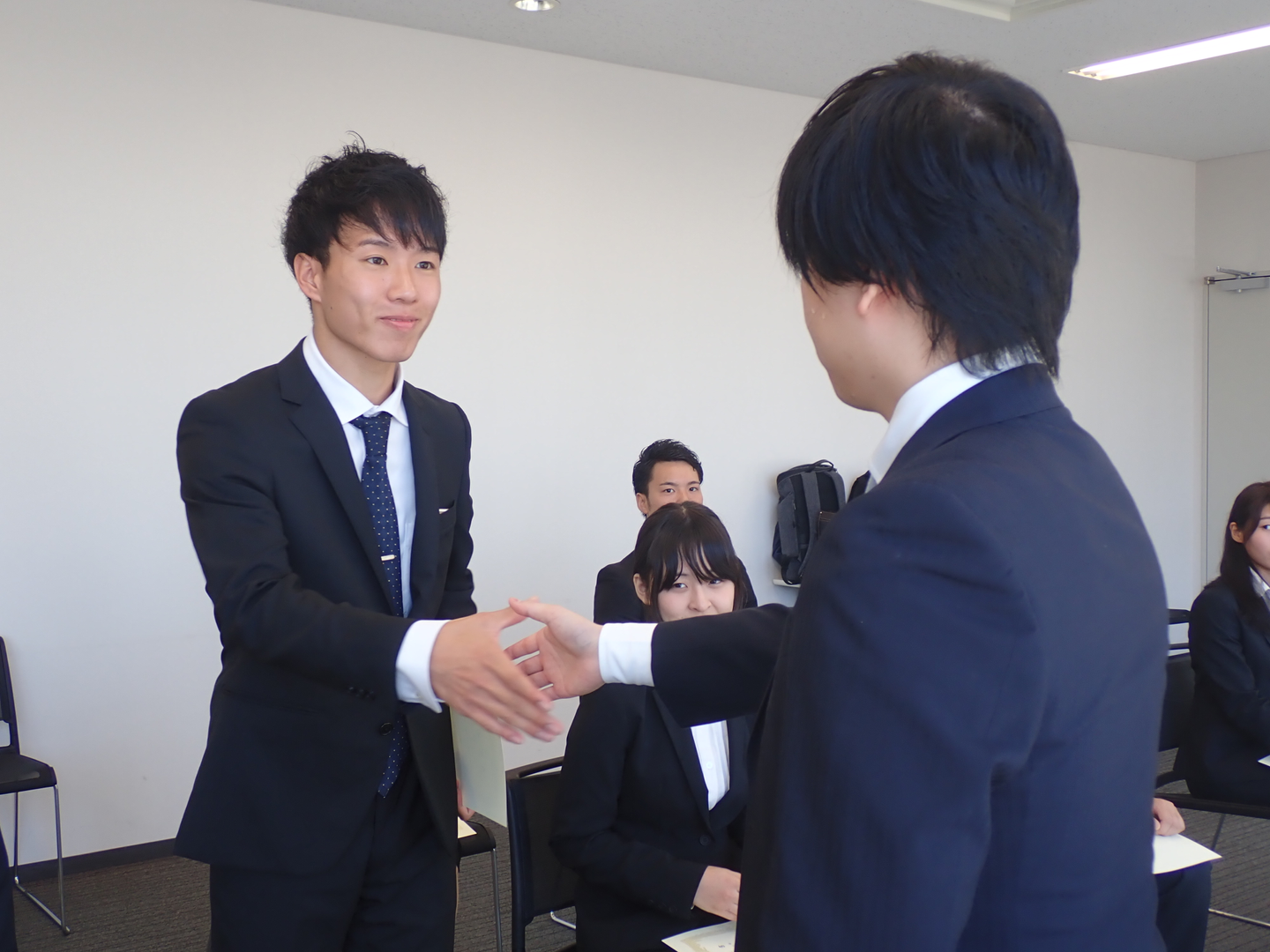 内定者のみなさんは、緊張した面持ちで小島から証書を受け取っていました。