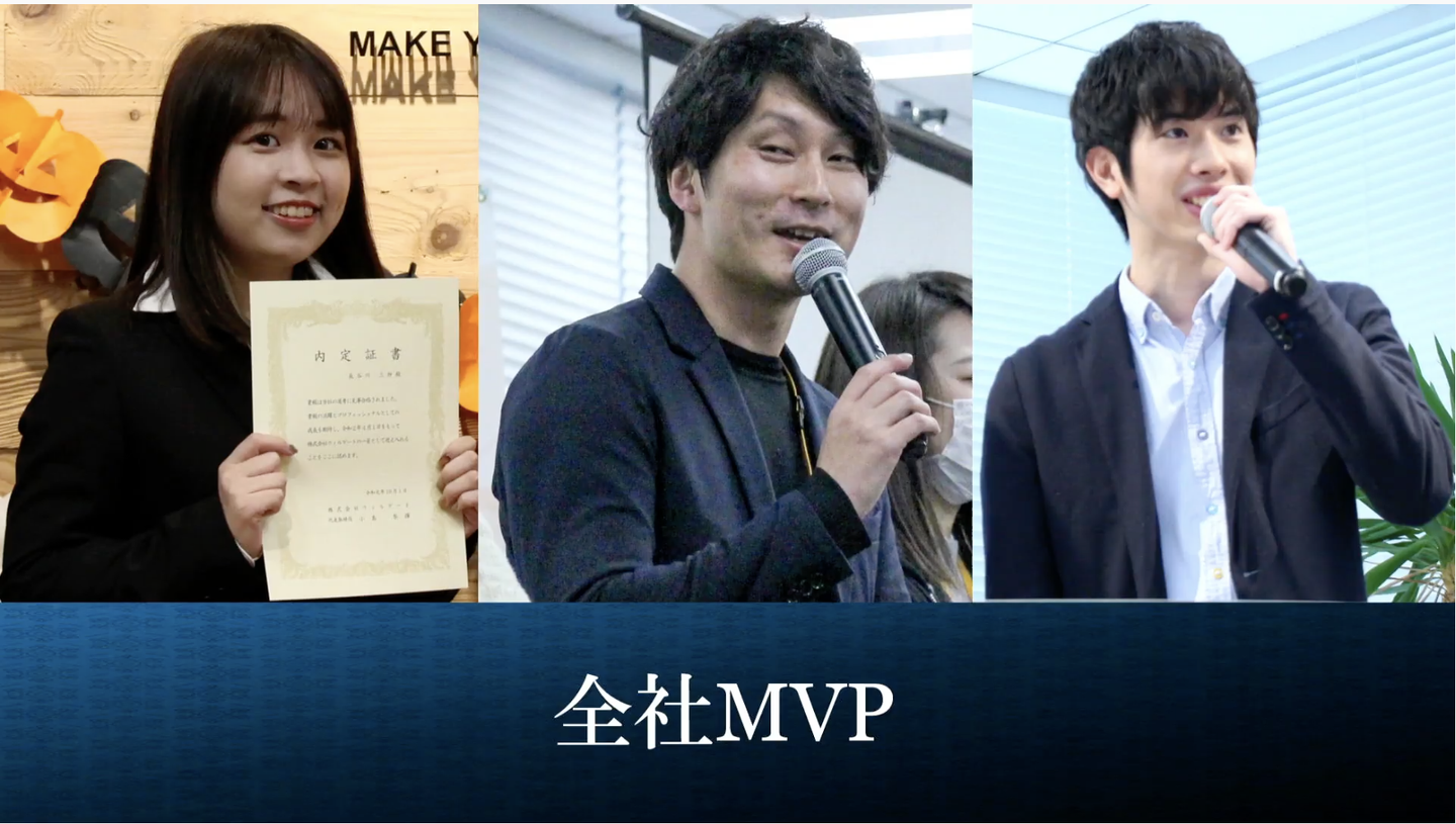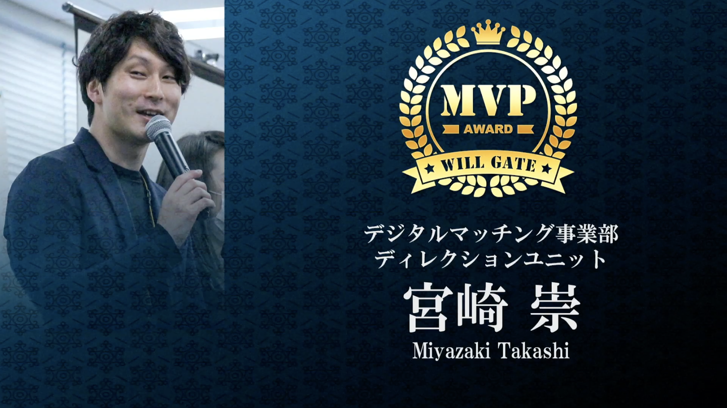 こちらの「セールスMVP」「バックオフィスMVP」「エンジニアMVP」の3名から選抜されたのは、「バックオフィスMVP」を受賞した宮崎でした。