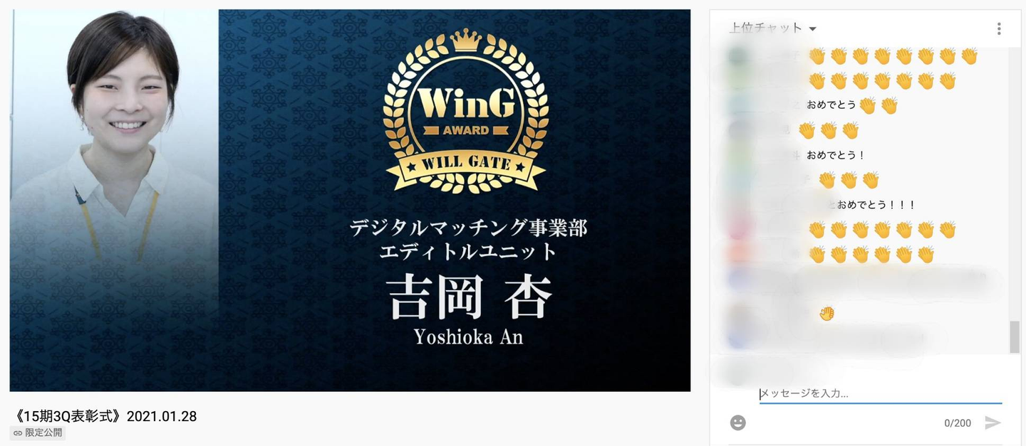 (今回の司会は新卒1年目の水附(@cheezaW)が担当。コメント欄では「司会よかった!」「めちゃくちゃ声がいい!」と称賛の嵐が巻き起こりました)