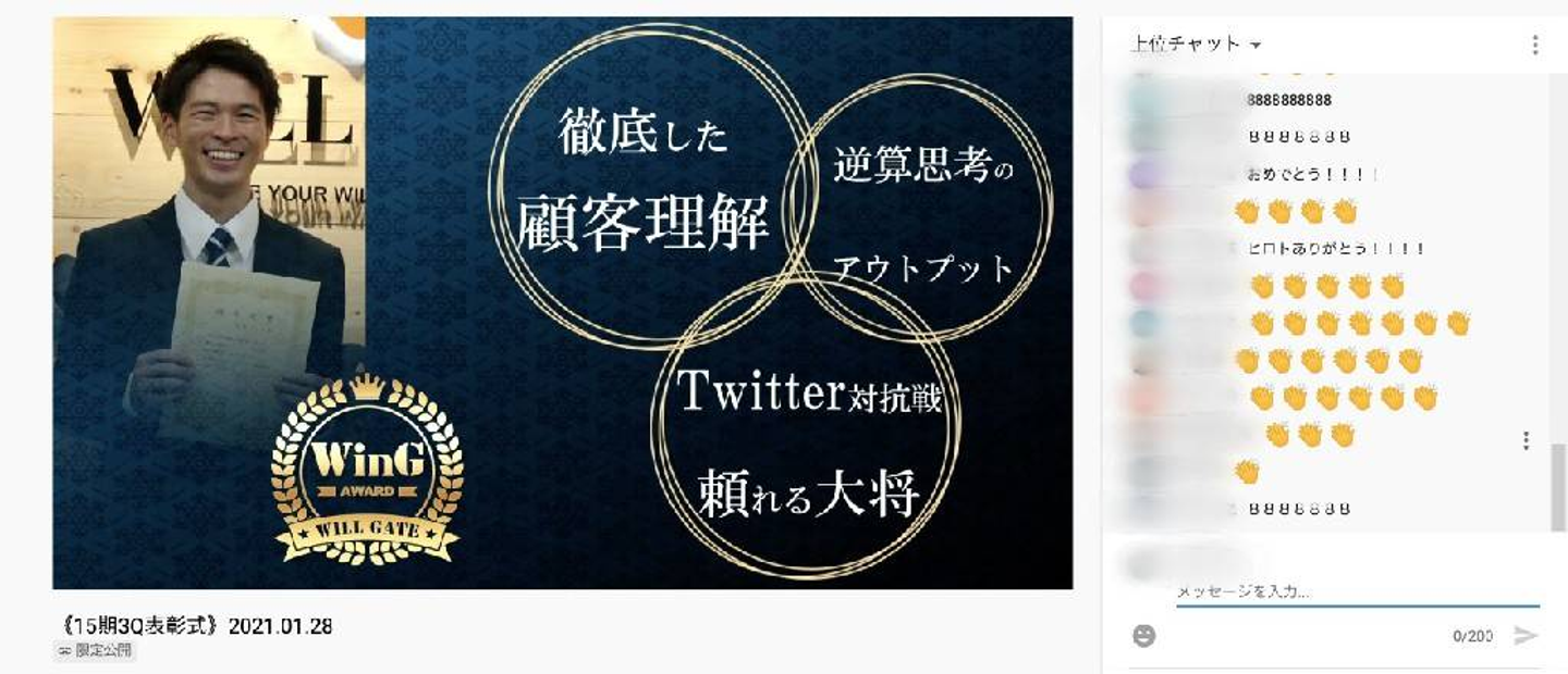 ウィルゲートの行動指針『WinG』(「ウィング」と呼ばれています)を最も体現していた社員に贈られるのが「WinG賞」です。