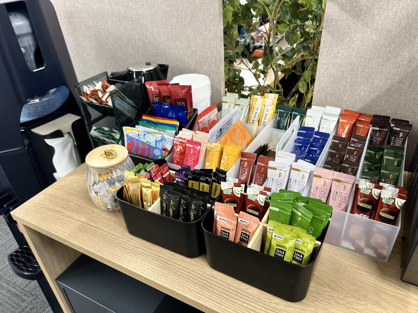 社内には自由に飲めるコーヒーやスープ等も常備されているので、適度に休みながら作業を進めています。