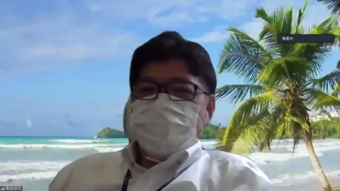 ▲Zoomミーティングに突如、南国背景で現れるお茶目な高田さん(取締役です!)