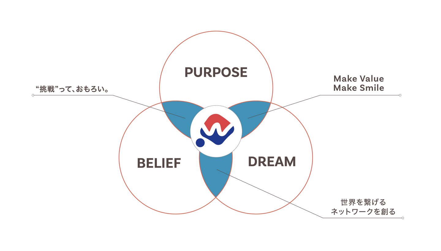 WWBは、ごくゆるやかな不変の“PURPOSE/DREAM/BELIEF”だけを提示しておき、あとはそこに集まった個人やパートナー企業が想い想いにそれぞれの妄想をPDBの価値観を守る範囲で実現していく組織が望ましいと考えています。