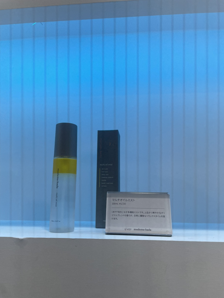 肌だけでなく髪にも、全身に使うことができるオイルミスト。実際につけてみるとさわやかな香りとみずみずしくもしっとりした質感を楽しむことができました。