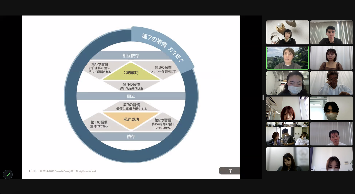 実はちょうど私も研修が始まる前に「7つの習慣」読んでいたため、とても楽しみな研修でした!