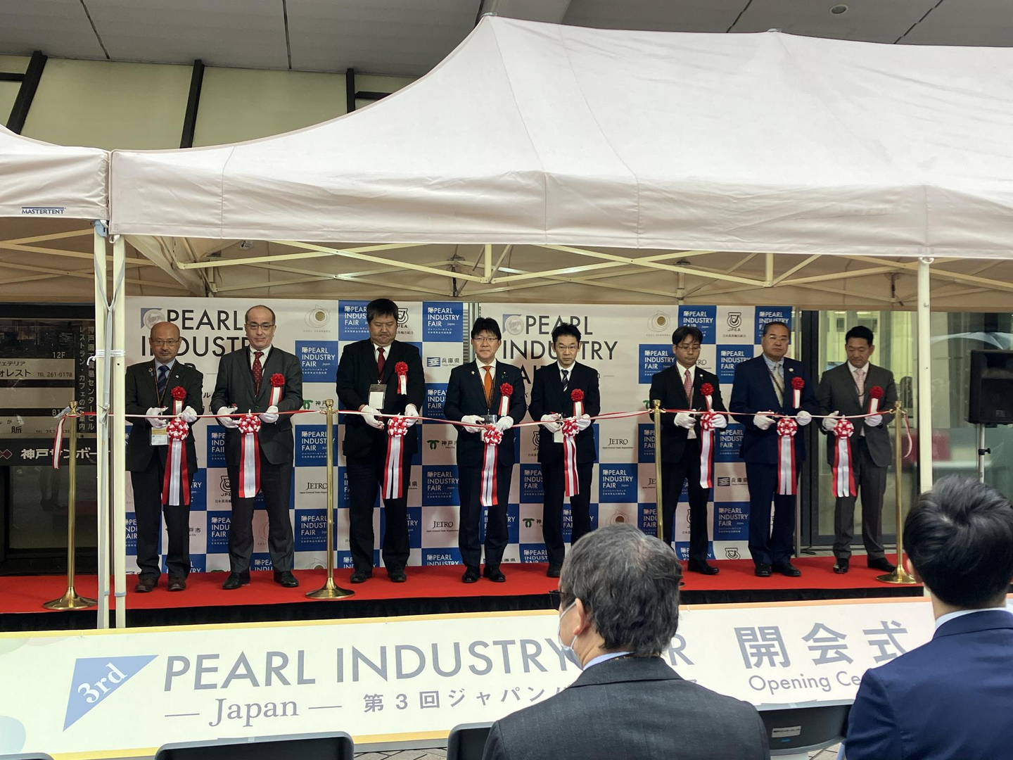 準備が終わると会場では開会式が始まっていました。開会式では、農林水産省や独立行政法人日本貿易振興機構(ジェトロ)といった名だたる方々が出席しており、ジャパンパールフェアの注目の高さを表しています。