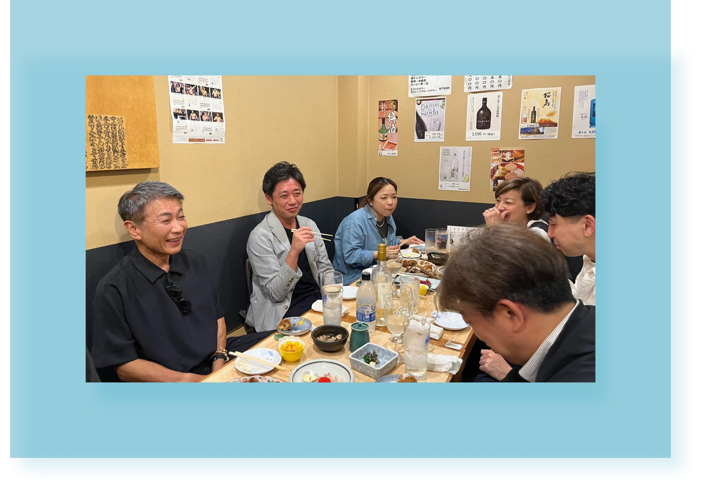 日中の真剣な議論から一転、美味しい料理を囲みながら、今日の振り返りや下半期への想いを語り合い、大いに盛り上がりました。