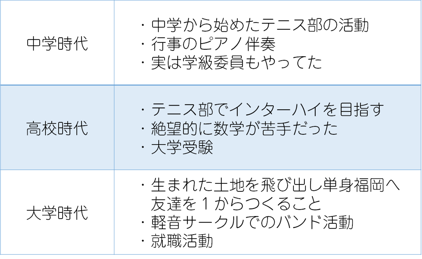 中学・高校・大学など、頑張ったエピソードを3つずつ書き出してみましょう。