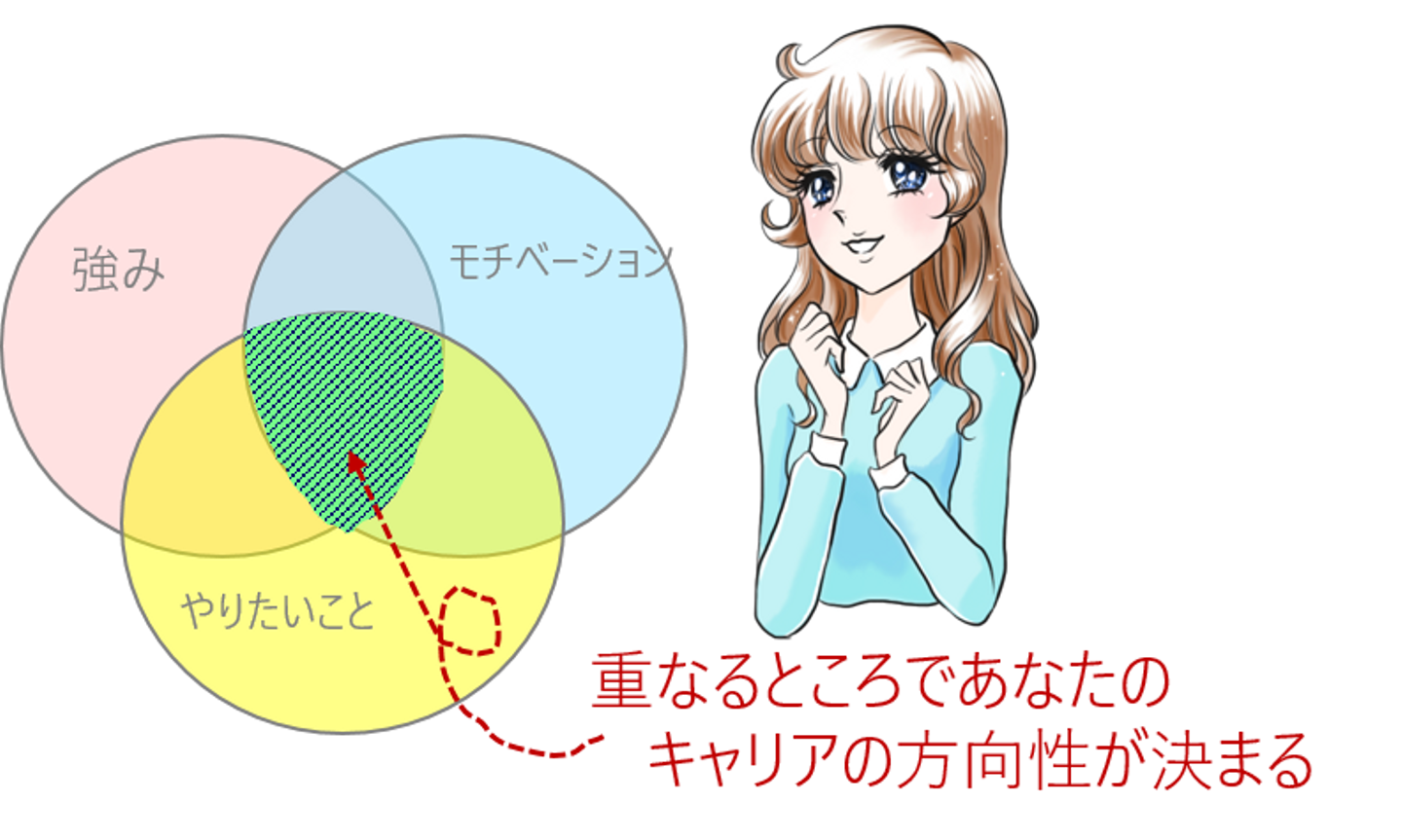 この3つが重なる部分が、あなたのキャリアの方向性となります。