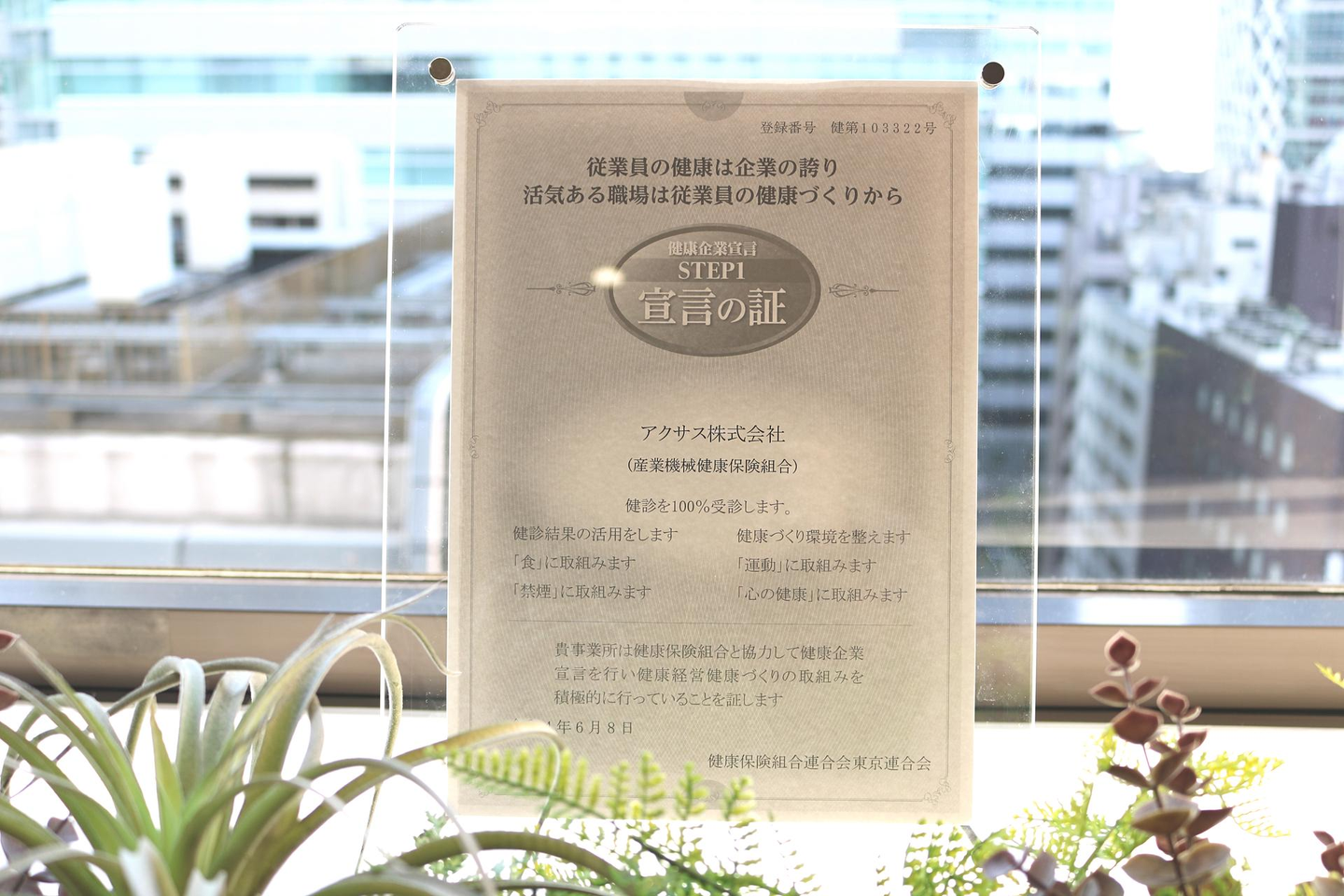 ※写真は健康経営・健康づくりに取り組む企業であるという証の「宣言の証」です。