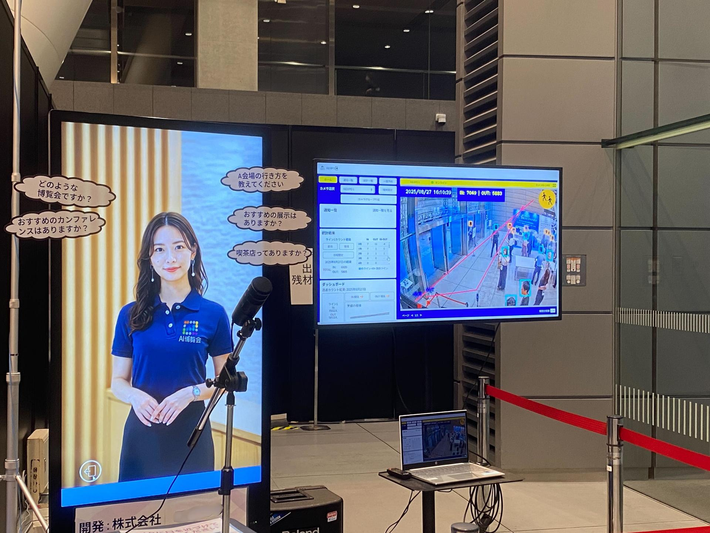 画面には、AI博覧会の公式Tシャツを着た案内スタッフの方が!!
