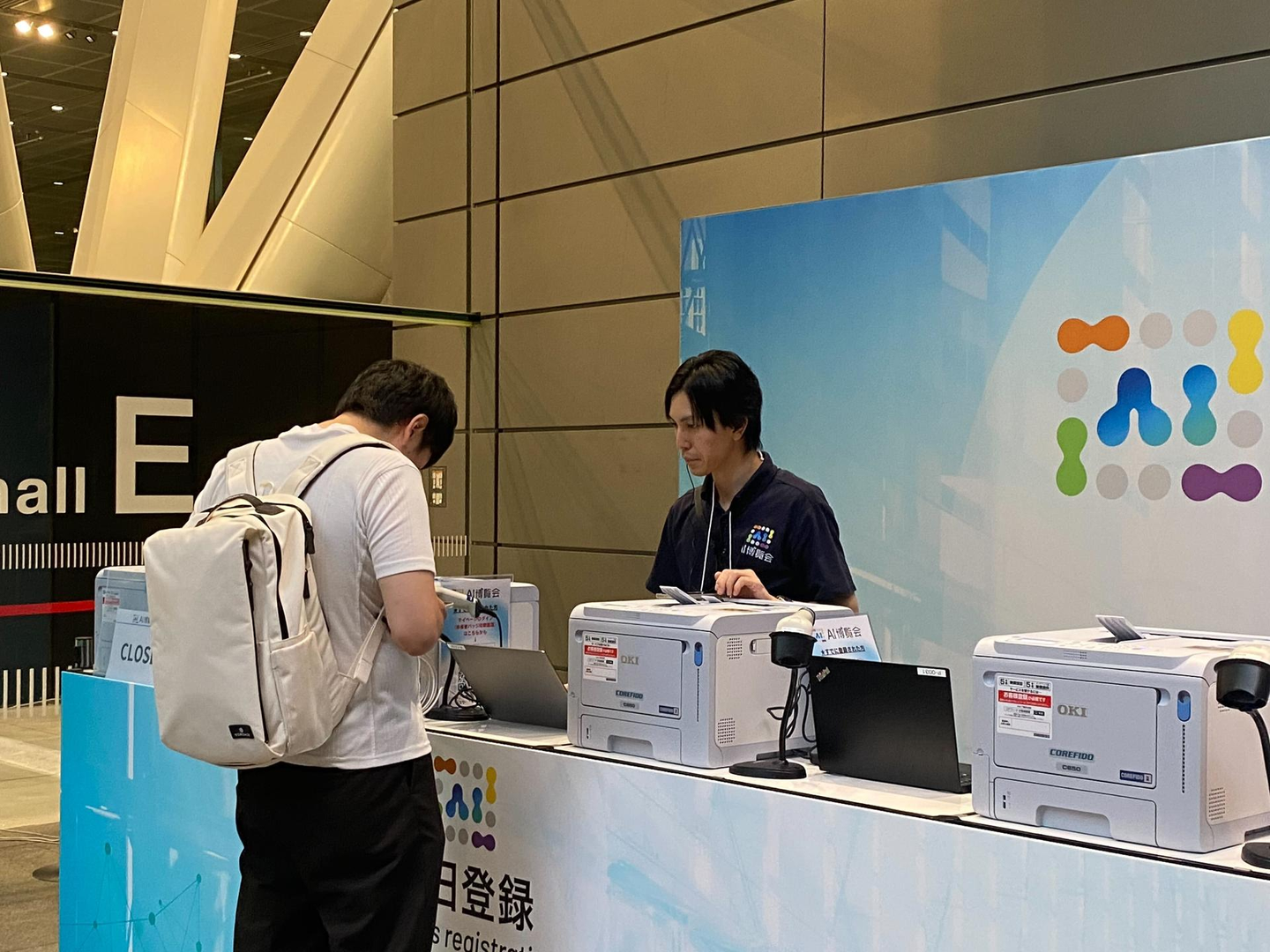 事前に発行された来場者用のQRコードをかざし、入場バッジを印刷します。