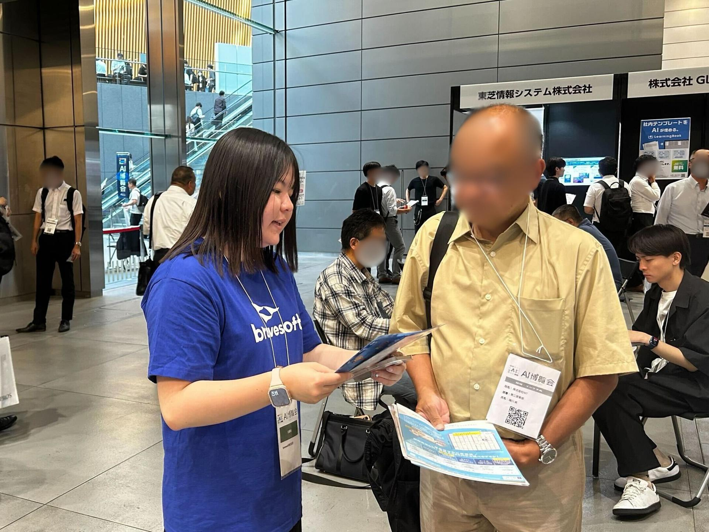 さらに、来春入社予定の26卒内定者のメンバーも、インターンとして参加してくれていました! 先輩社員がお客様対応で手が離せない場面でも、一人で堂々と来場者の方にサービスの説明をしていて、その姿はもう立派なbravesoftの一員でした👏💕