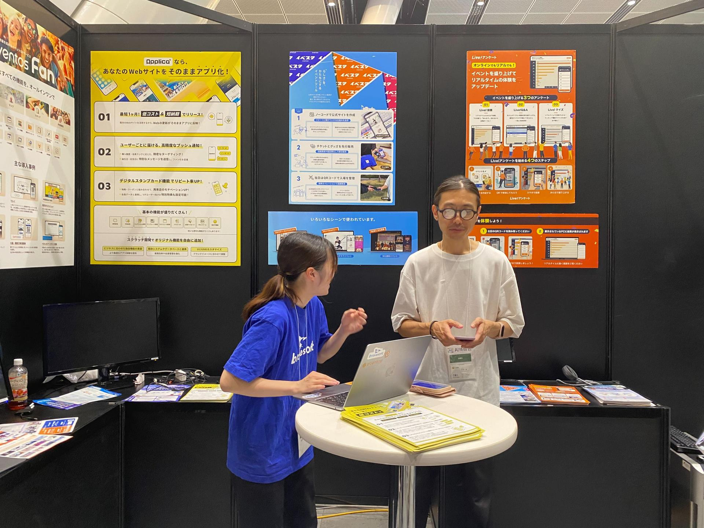 正式リリースは今年の11月ごろを予定しており、今回のAI博覧会ではいち早く紹介をさせていただいていたのですが、今回のAI博覧会では、弊社も力を入れているチャットbotのサービスの展示がメインだったため、AIを用いた双方向の翻訳サービスであるイベプラは珍しいということもあり、多くの来場者の方が興味を持ってくれている印象でした!🙌