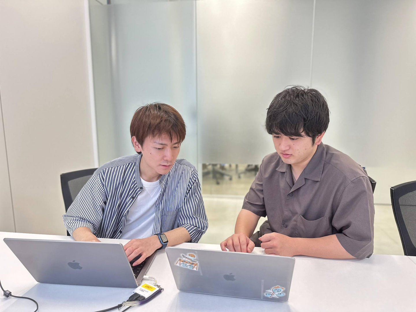 新平「逆に色んなことを任せてもらえて嬉しいですね。成長を感じられますし本当に感謝しかないです。特に、同じ事業部の先輩エンジニアのカンさんは、どのタスクをやれば自分の経験になるのかを考えてくれて提案をしてくれるので本当にありがたいです。実際に、AIチャットの本番反映をさせてくれたり色んな挑戦をやらせてもらえています!」