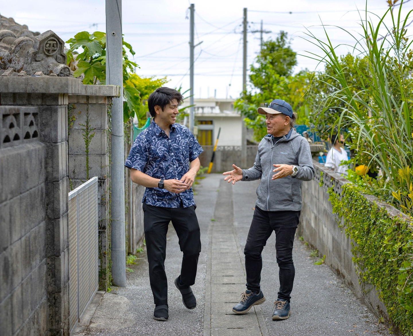 上原:僕は沖縄の世界の5大ブルーゾーンの1つ「大宜味」のエリアを担当しています。ブルーゾーンの1つつで、世界からも「長寿の村」として注目されている集落で、そこに住んでいる「おじいおばあ」の長寿に繋がる生活文化を残し伝える観光体験の企画や販売に携わっています。