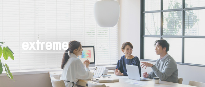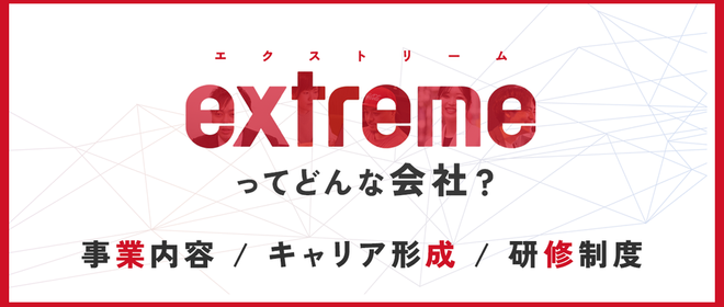 世界では技術トレンドの波が急速に変化しています。 どうキャッチアップしていくか?それとも、どうリードするか? 未来はそこから生まれます。 エクストリームは、クリエイター&エンジニアのタレント集団を社員として抱え、企業の求めに応じて最適なタレントを人選し、ユニットとして送り込みます。社内では、トレンド情報や新しい技術、ノウハウを共有し、社員たちは研修や研究を通じてどんどんスキルを向上させています。 このように、エクストリームは技術の最前線で活躍する人材を育成し続けています。