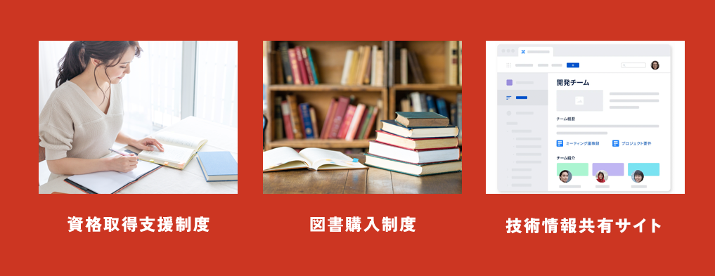 情報処理技術試験や簿記など会社が定めた資格を取得する際に⼀部助成⾦が出ます。