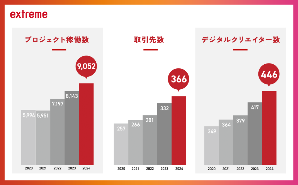 エクストリームは才能を育む「デジタルクリエイター&ITエンジニアプロダクション」として常に進化。未来をつくるクリエイティブ・ユニットを次々と⽣み出します。