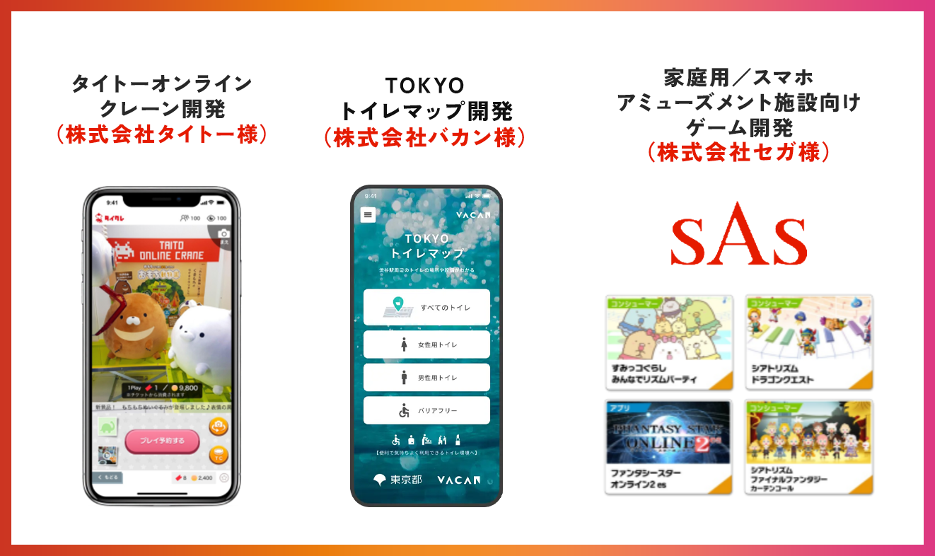 - 家庭⽤/スマホアミューズメント施設向けゲーム開発(株式会社セガ様等)