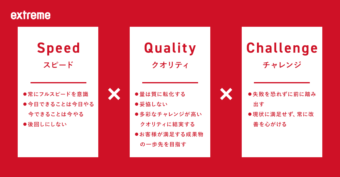 来年で創業20年を迎えるエクストリームが、なぜここまでのスピードで成長してきたのかを文化と制度の観点からご紹介していきます。新しいステップに挑戦するあなたが安心してスタートを切れるよう、私たちがどのように伴走していくかをぜひ最後までご覧ください。