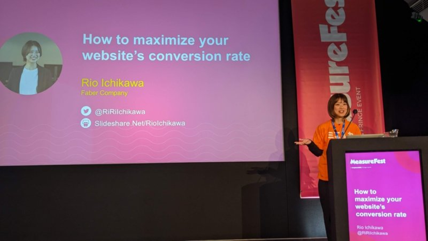 セッションタイトルは「How to maximize your website’s conversion rate」。私が手がけた、ミエルカヒートマップの商品紹介ページの受注率を改善した成功事例をお話しました。その前年参加したときは聴衆としてでしたが、Google Search CentralのTech writerであるLizzi Sassman(リッジー・サースマン)氏にインタビューする機会をもらえたことも大きな転機でしたね。