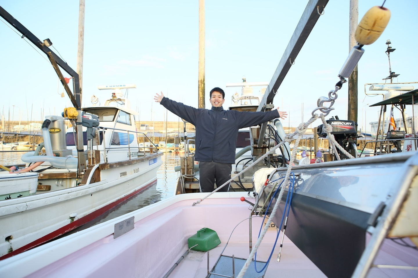 江口家の海苔漁船にて