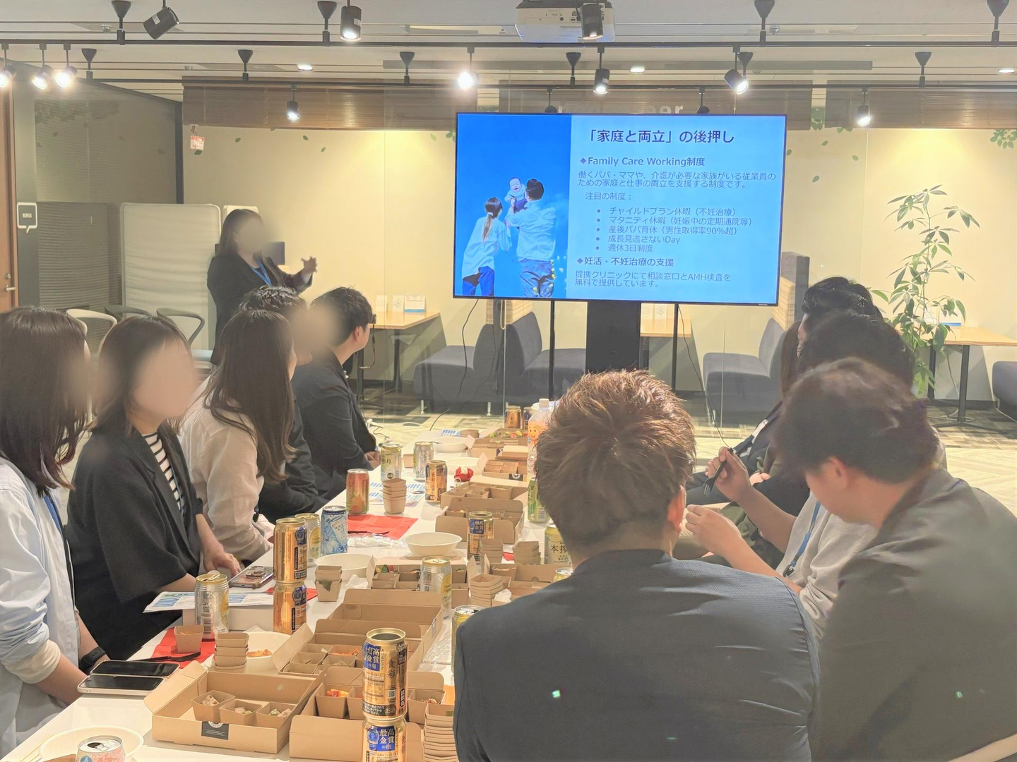 卒業されて数年以上経つ方が多かったため、現在のネオキャリアについて知っていただきたく、最後に少しだけ情報シェアのお時間をいただきました!今年開始した新サービス「Bスポンサーズ」や、新たに設立した子会社「ふるさと開拓ラボ」について。女性活躍推進に取り組む企業を賞する「WOMAN’s VALUE AWARD」の優秀賞を3年連続受賞したことや、福利厚生「Family Care Working制度」など、特に変化したポイントを中心にお伝えしました。