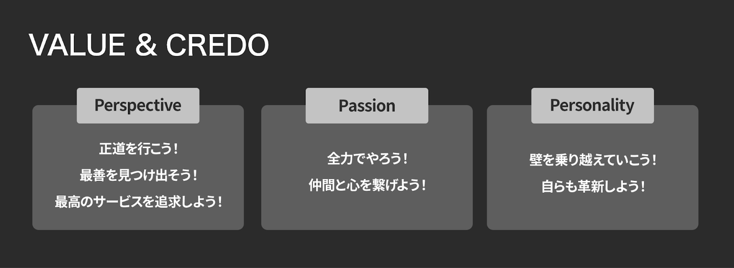 私たちが大切にしている価値観は以下の3つです。
