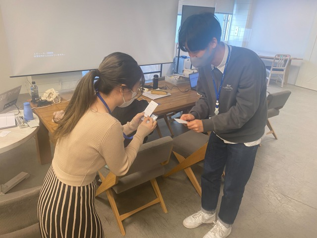 「分からないことをその場で消化する」、「発言ナイス!のリアクションを忘れずに」など、研修のみならず、今後社会人となる上で重要な考え方を共有しました。