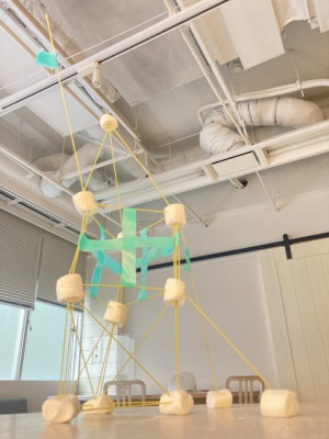 研修初日、お互いがどんな人なのかも分からない中で始まったアイスブレイクは、「マシュマロチャレンジ」。