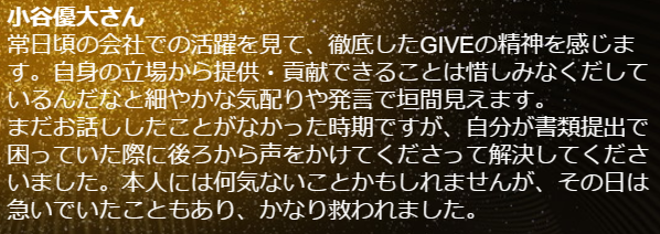 小谷:日頃からGIVEの精神は大切にしているので、書いていただけてすごく嬉しいです。