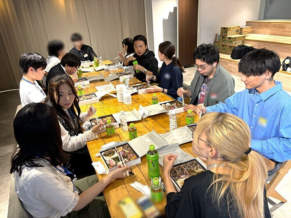 まずはお待ちかねのランチタイム。お弁当を楽しみながらも、話が弾みます🍱