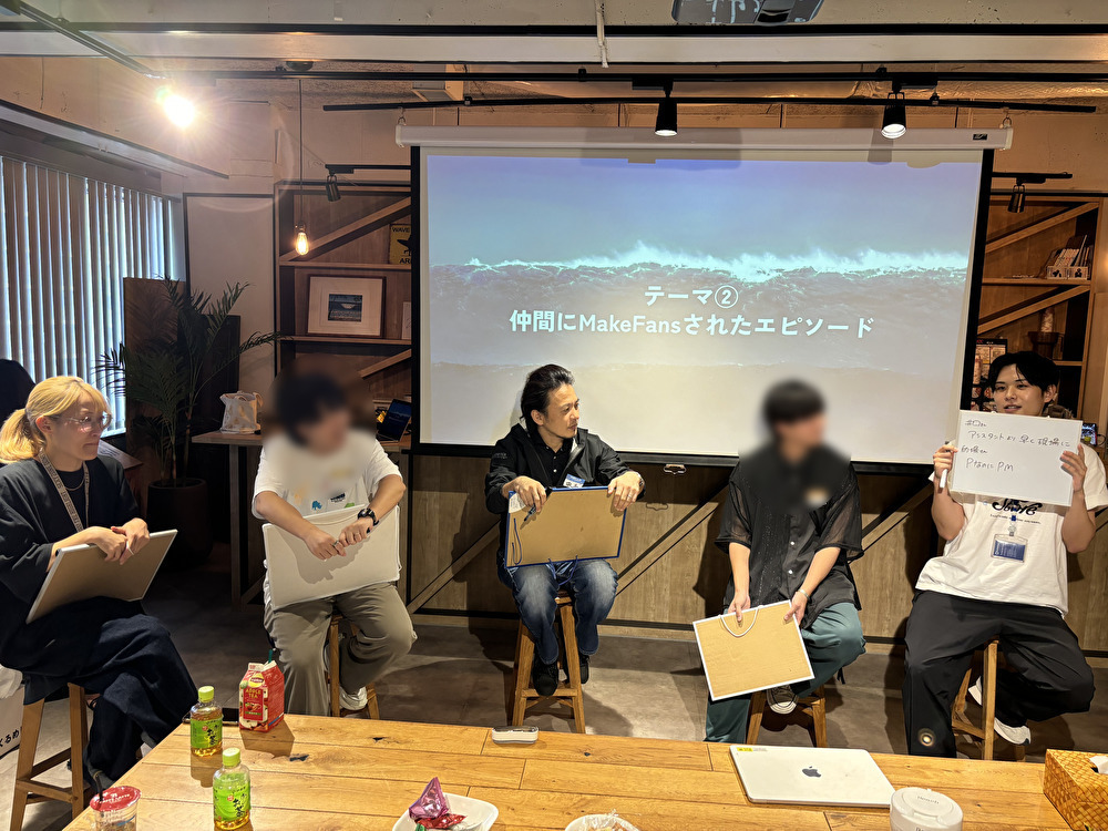 「思い出に残っている案件」「仲間にMakeFansされたエピソード(ノースショアのコアバリュー)」など、説明会や選考でもらうことの多かった「あるある!」という質問に、社員が実際のエピソードを交えながら回答していきました。