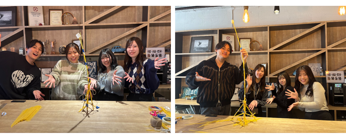 幾つかの備品とパスタを用いて、自立するタワーを立てるというチャレンジ企画です。