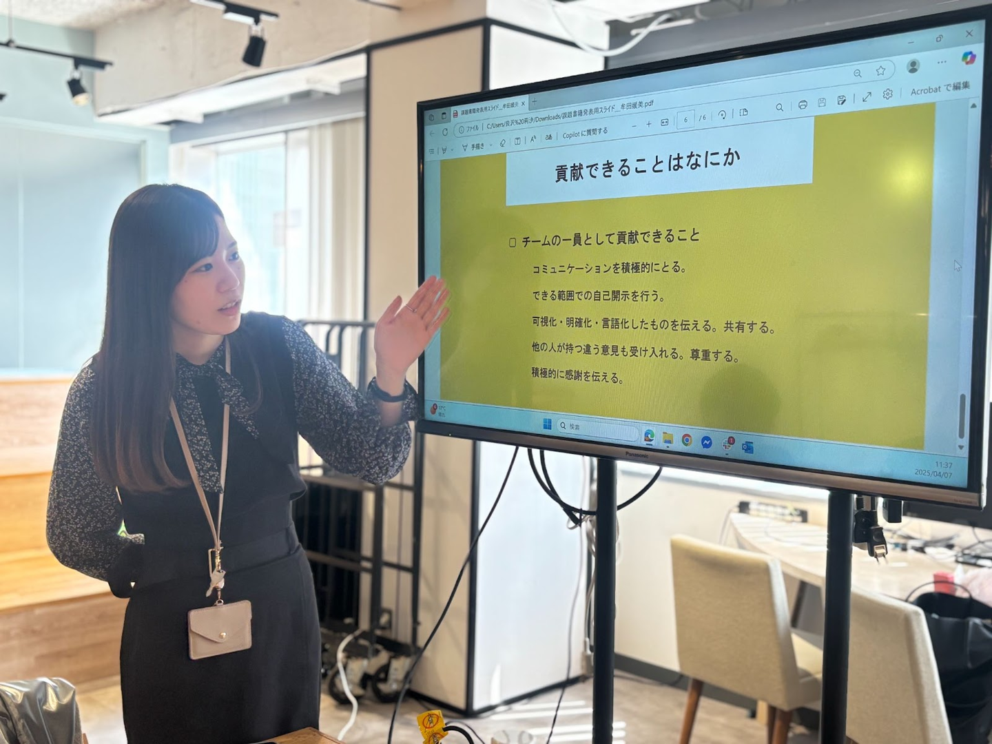例年少しずつ中身をアップデートしている本研修ですが、今年は「仕事」をするためのコツについて、私の目線から25新卒社員にレクチャーさせていただきました。