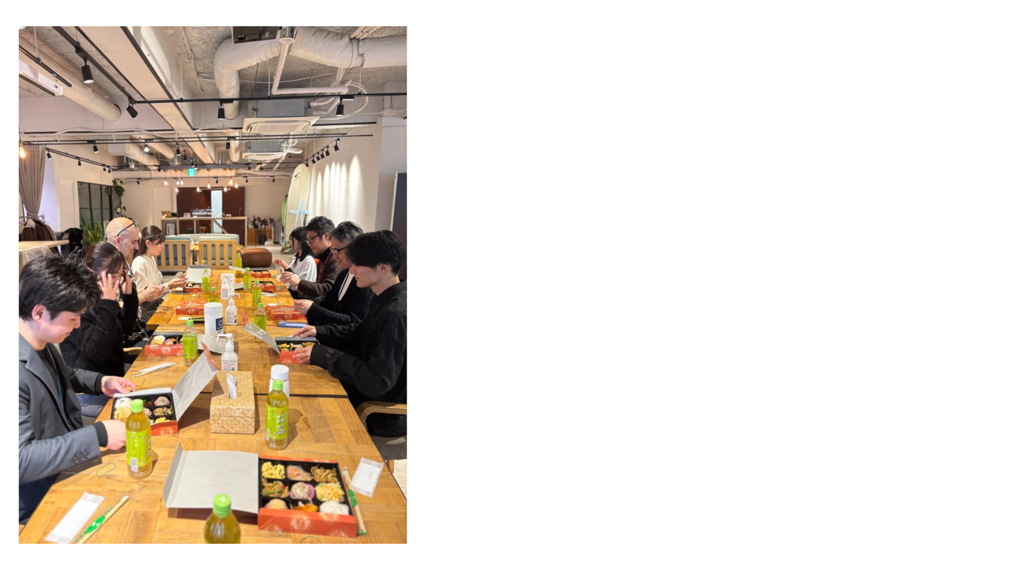 入社式のあとは経営陣と人事チームも混ざり、お待ちかねのランチタイム🍚