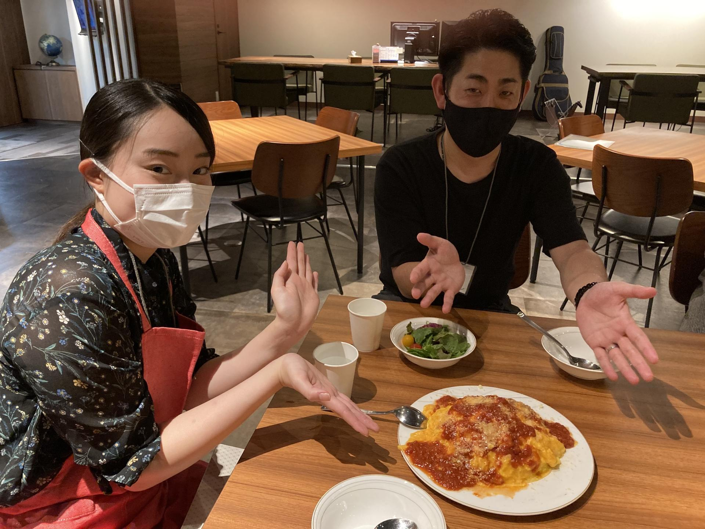 お料理選考は、社員さんと就活生とがペアを組んで、一番美味しいオムライスを作ったペアが優勝というような選考でした。本社2階にある食堂・カフェのキッチンを使ってやったんです。
