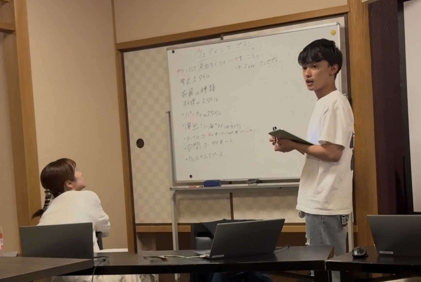 プランナー役とお客様役に分かれて、ドラフトを元に実際の接客シーンをシミュレーション。