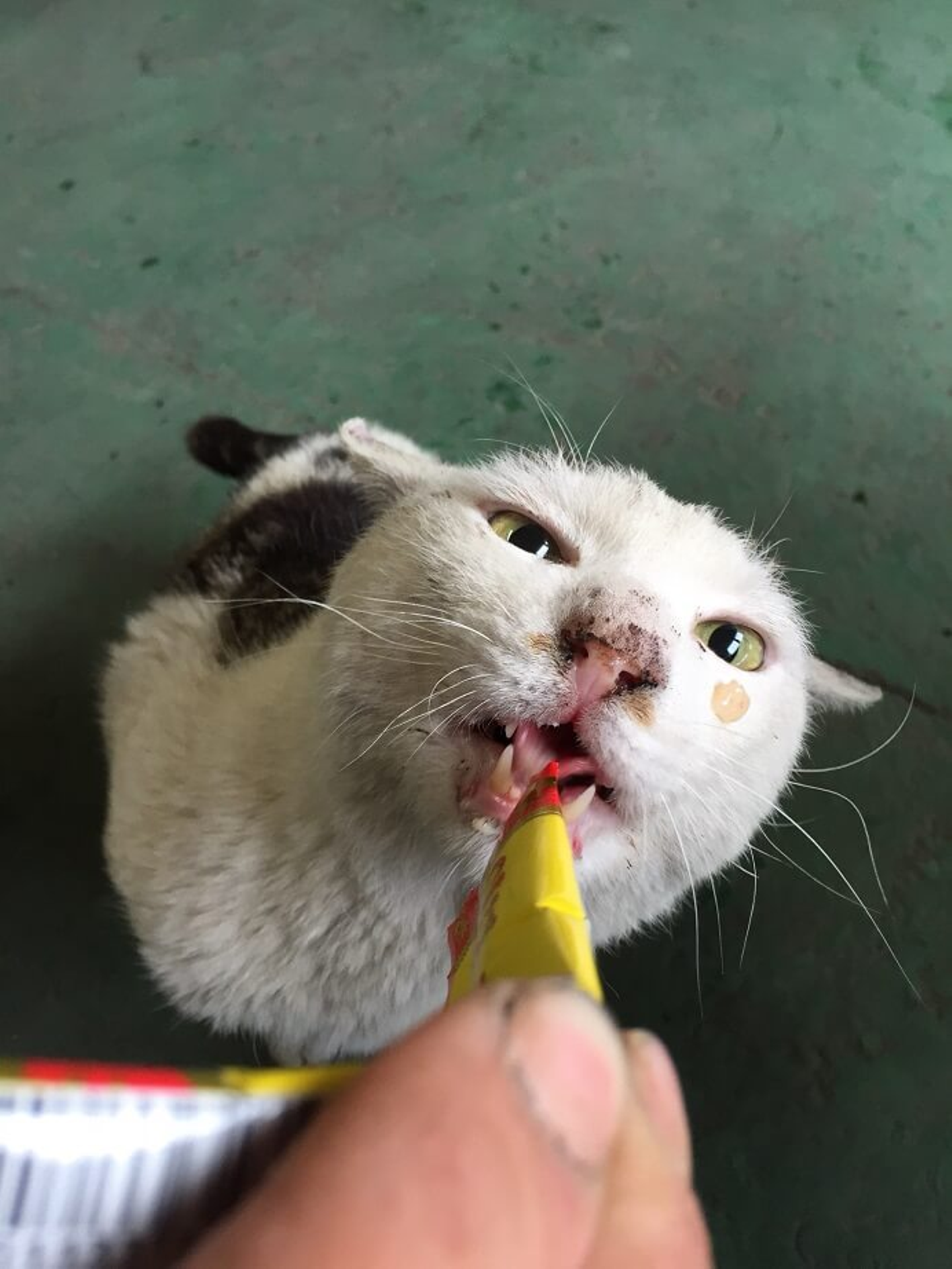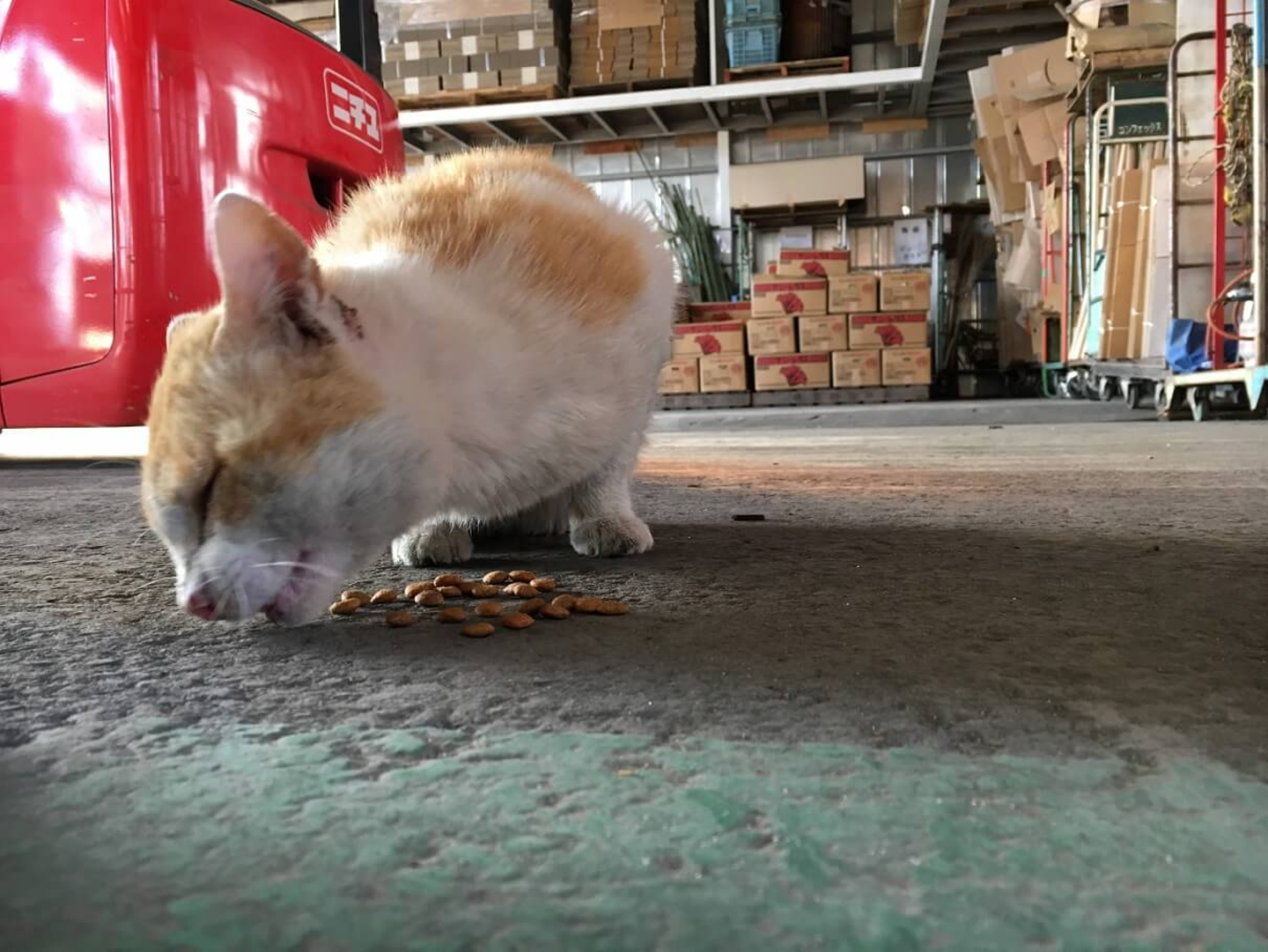さて、外回りを終えた とら がお腹を空かせて出勤してきます。