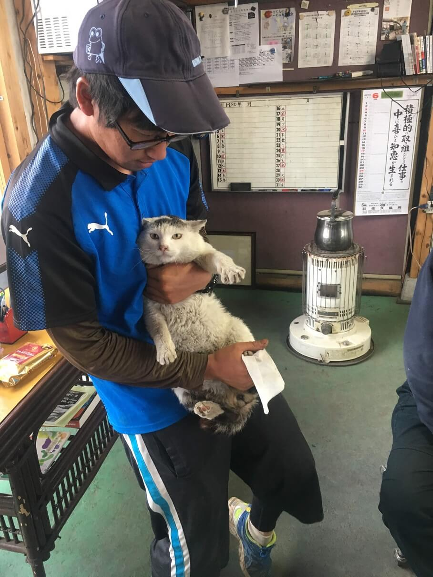 しろを溺愛している社員 大原がしろを綺麗に拭いてゆきます。