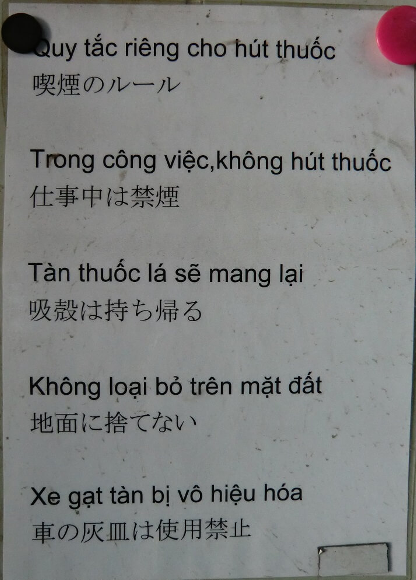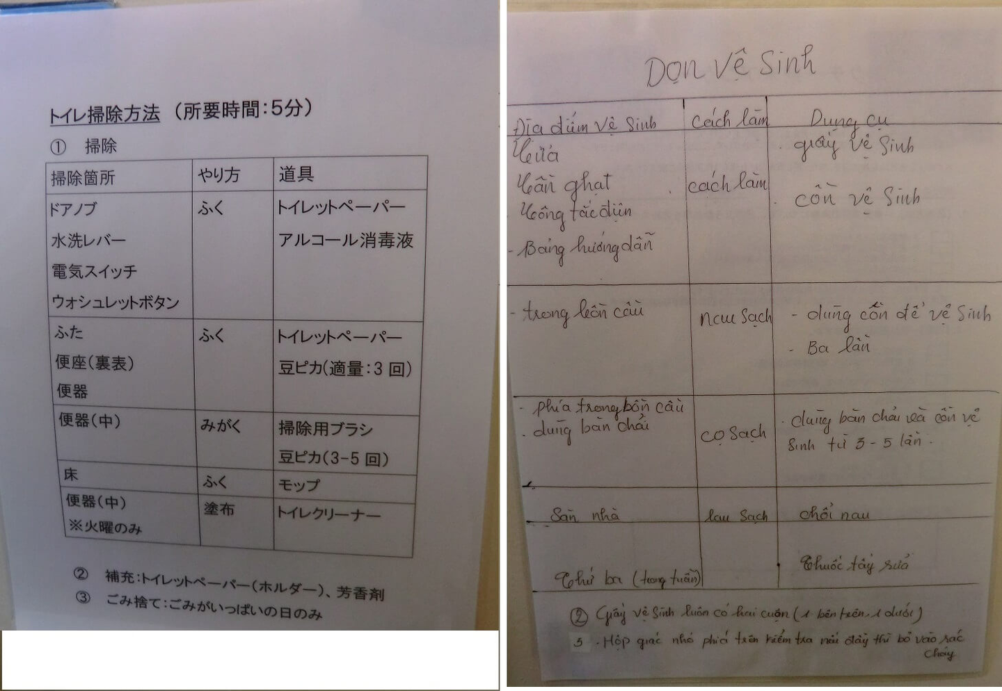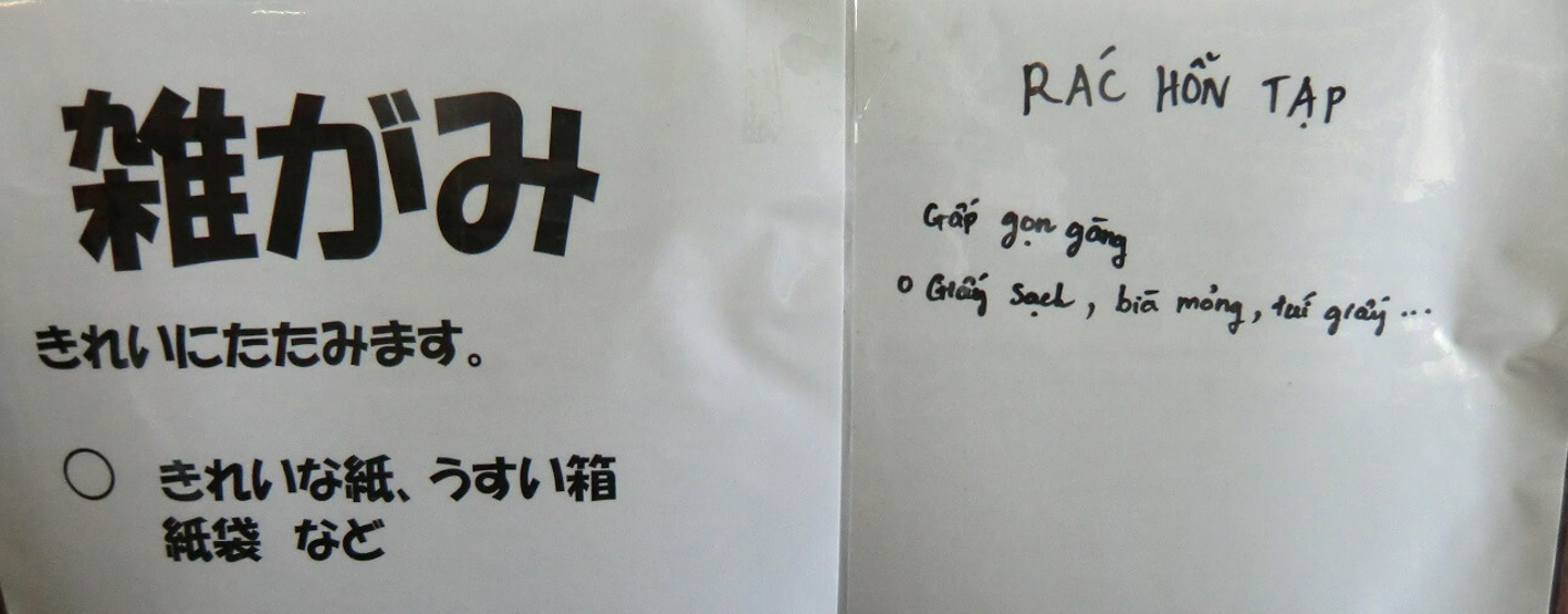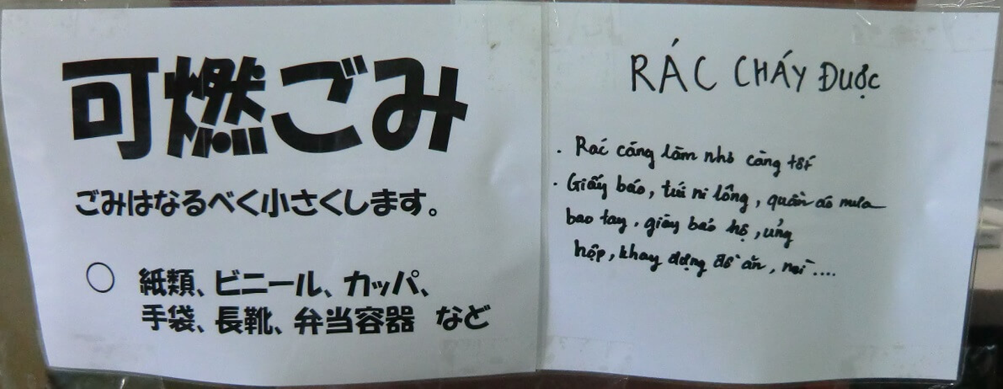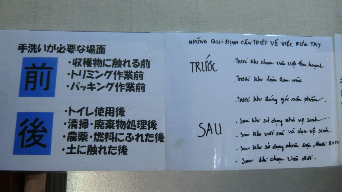 ベジアーツでは必要な個所に様々な貼り紙をしてますが、この機会に同じ内容をベトナム語でも掲示するようになりました。