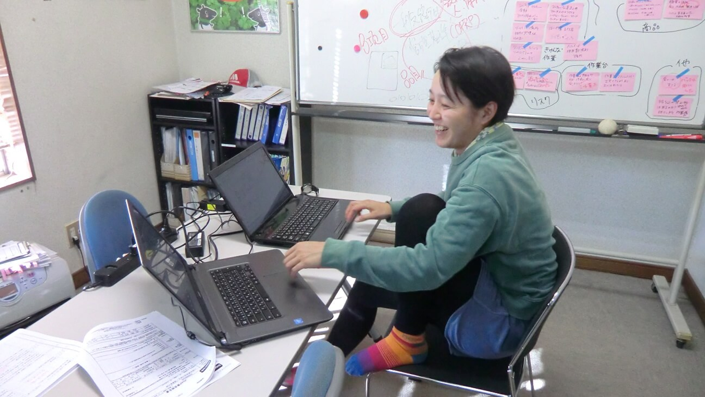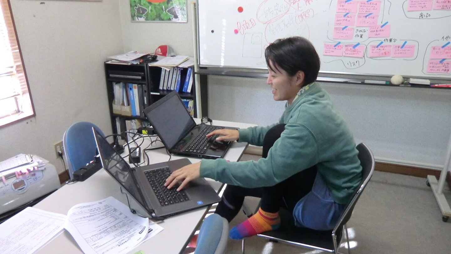 資料作りの為、GGAP担当の一人である児玉 (自称 C-C-B 笑)が、二刀流でパソコンを操作している姿はなかなかカッコいいです!笑