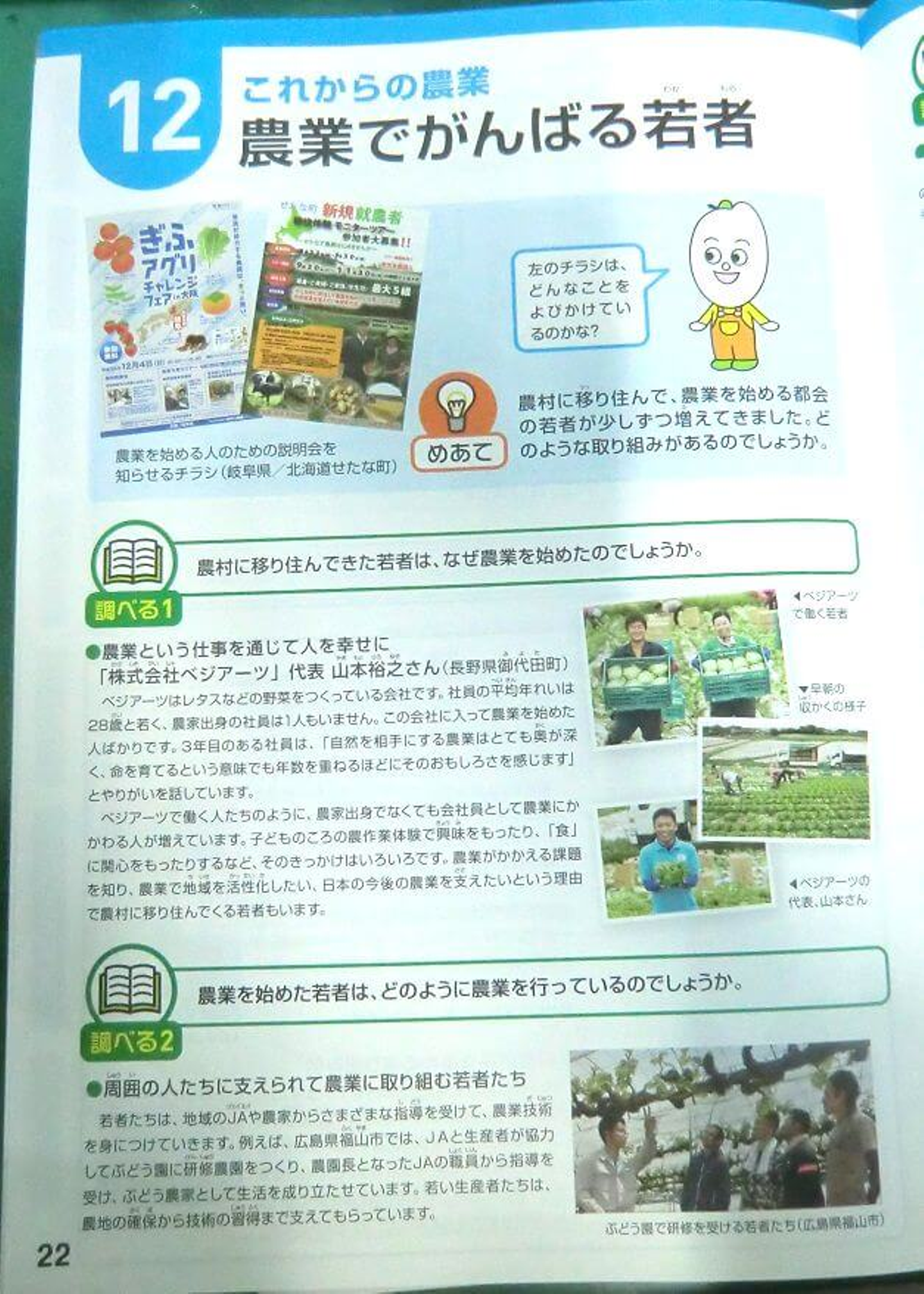 ベジアーツが掲載されているのは、22ページの「農業でがんばる若者」というページです!
