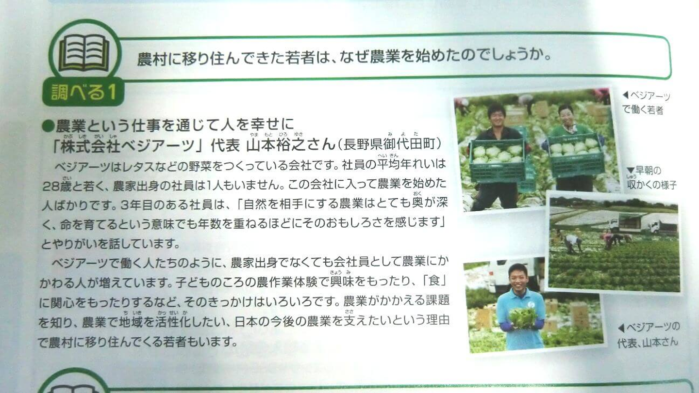 大変喜ばしいことに、小学校高学年向けの補助教材「農業とわたしたちのくらし」にベジアーツが掲載されました!!