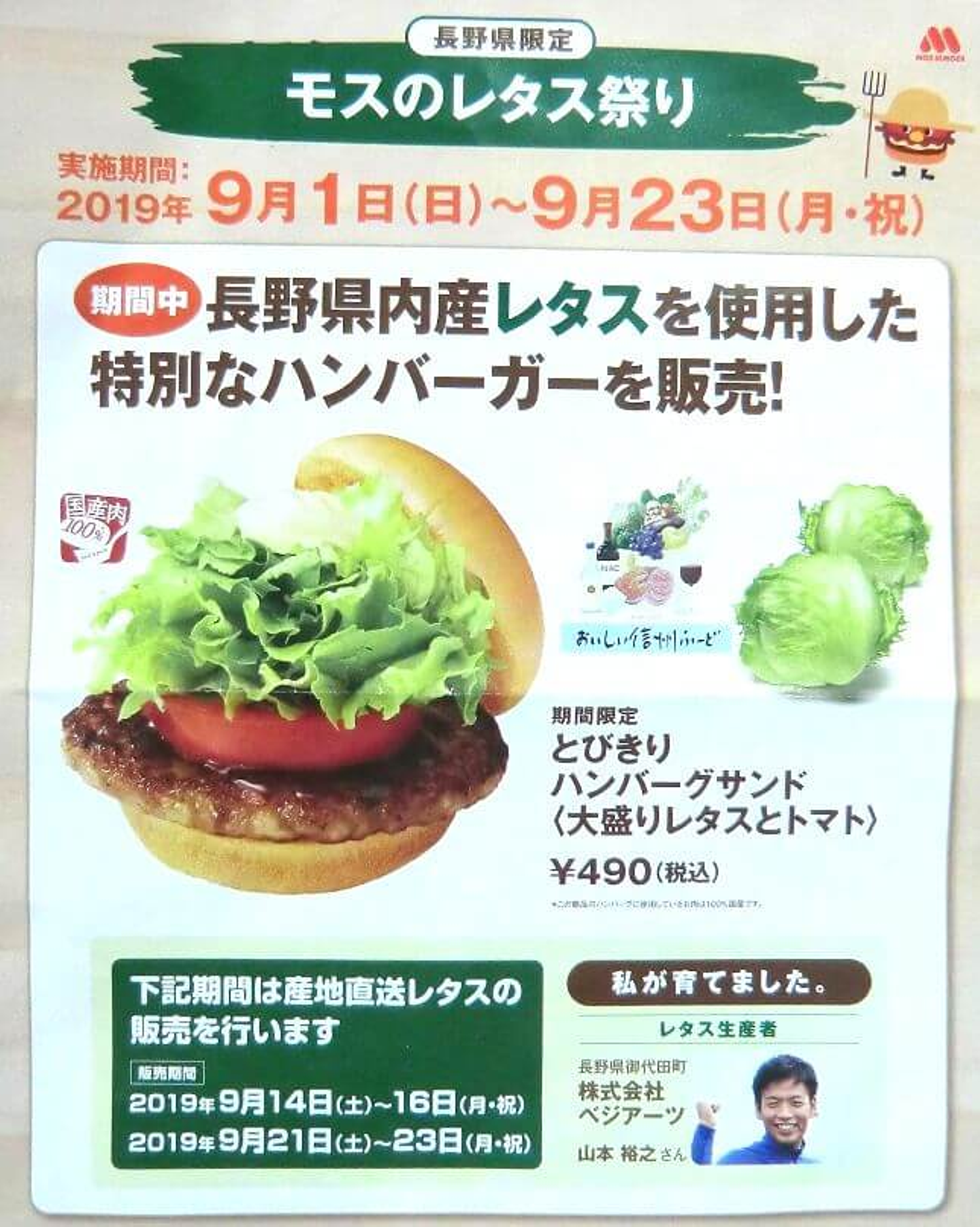 現在、長野県のモスバーガー限定で開催されております「レタス祭り」。