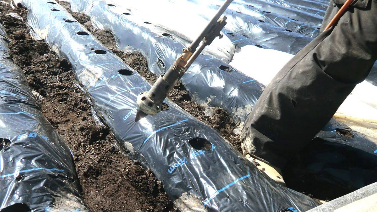 実はこれ、熱の力を使ってマルチに穴をあける道具なんです!